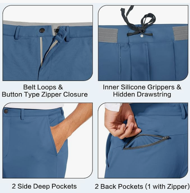 • Stretchable Fabric for Maximum Comfort: Made from high-quality stretch fabric, these joggers provide ultimate comfort and flexibility, allowing you to move freely whether you’re on the golf course, at work, or out for a casual day.
